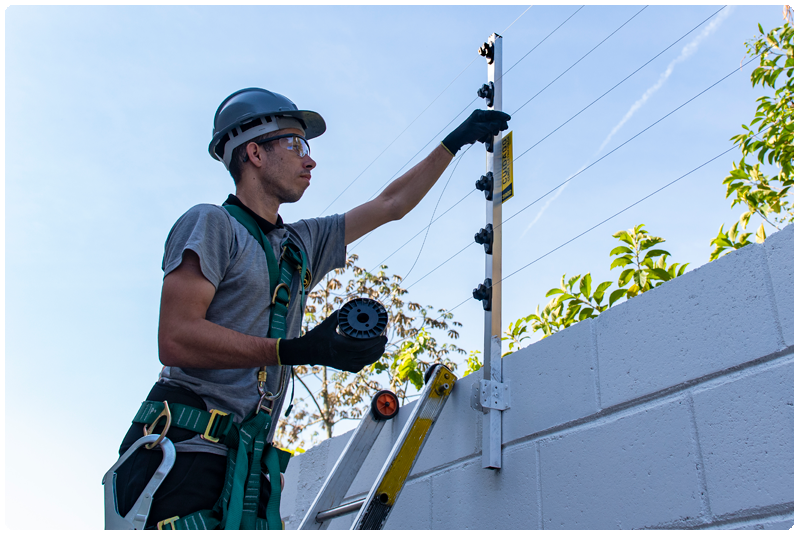 Cerca elétrica é um sistema de proteção que utiliza fios energizados, conectados a uma fonte de energia apropriada, criando um campo de segurança ao redor da área a ser protegida. Quando alguém toca os fios, recebe um choque controlado (seguro), o que atua como um forte elemento de dissuasão.